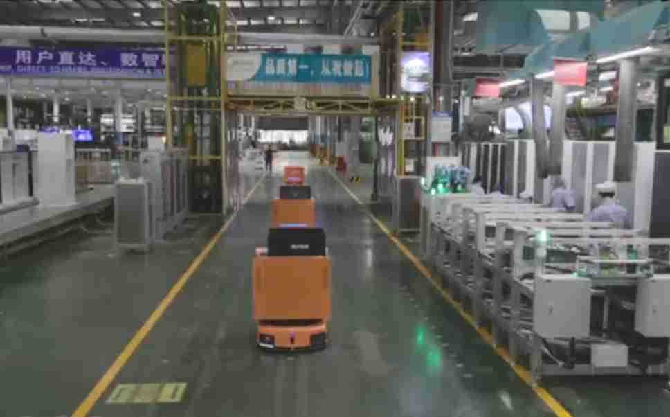为车载冰箱物流配送打造的智能解决方案,,,包含产中物流通过潜伏举升AMR搬运至线边,,产后成品物流智能仓储,,,流程包含产中物流智能齐套入库,,,线边安灯叫料AMR智能配送至线边,,,成品入库、、、、出库,,,,通过无人堆高车机器人,,,,智能仓储管理替代人工作业管理,,实现更高存储、、、、更高效率、、、、更具柔性化的解决方案。。。。